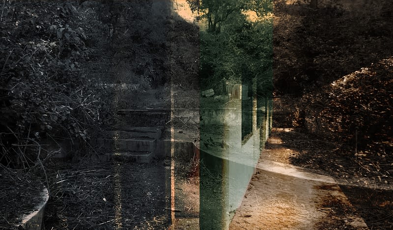 I have always been interested in architecture and design. Abandoned spaces and architectural ruins hold historical and personal memories. In time, they become a part of the collective social memory, reminding the past glory and beauty. I shot these images in 2011-2012. In 2020, I digitally reworked by adding layers, tints of colors, and superimpositions to create this work. This sort of metamorphosizing earlier images is a concurrent style in my photographic practice.